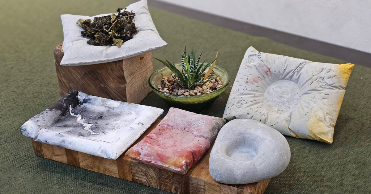 簡易攪拌灌漿調色也能做出獨一無二的專屬枕型盤器及植栽盆,半乾時也方便設計塑型。